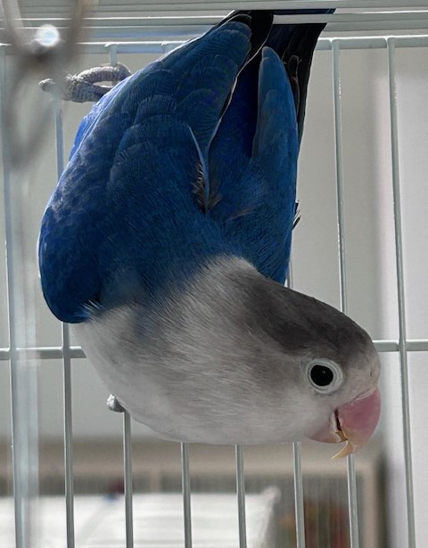 Hi - my name is Jessie! I am a blue masked lovebird. I was born in 2018 (found on my band) but sadly that is all we know about Jessie. Jessie was brought to our rescue by the Overland Park Animal Control. We love the colors on Jessie and the high energy this little birdie has! The adoption fee is $80.