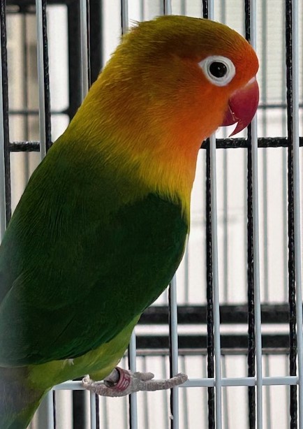 Hi - my name is Pearl and I am a masked lovebird of unknown age/gender. I was found outside with an injured wing and fortunately came here to recover. My adoption fee is $120.