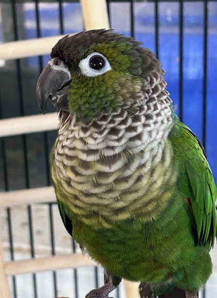 Hi - My name is Neehow and I am a 13 year old Moustache Parakeet. This will be my third re-homing and I hope to make it my last! I am a bit hand shy and prefer women. I love wooden and paper toys that I can shred up. I also LOVE bells! I prefer a spray bottle or water dish bath. I like my attention from a distance. My adoption fee is $400. I am very interested in whatever is going on around me and I would love to be in a home where I can watch everything that's going on around me. I am not too loud and at my original home I was living in the dining room and watching both the kitchen and family room for entertainment.
