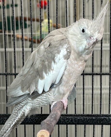 Hi - my name is Peep and I am a cinnamon female Cockatiel. I am from a flock of 17, so not much is known about me. My adoption fee is $100.